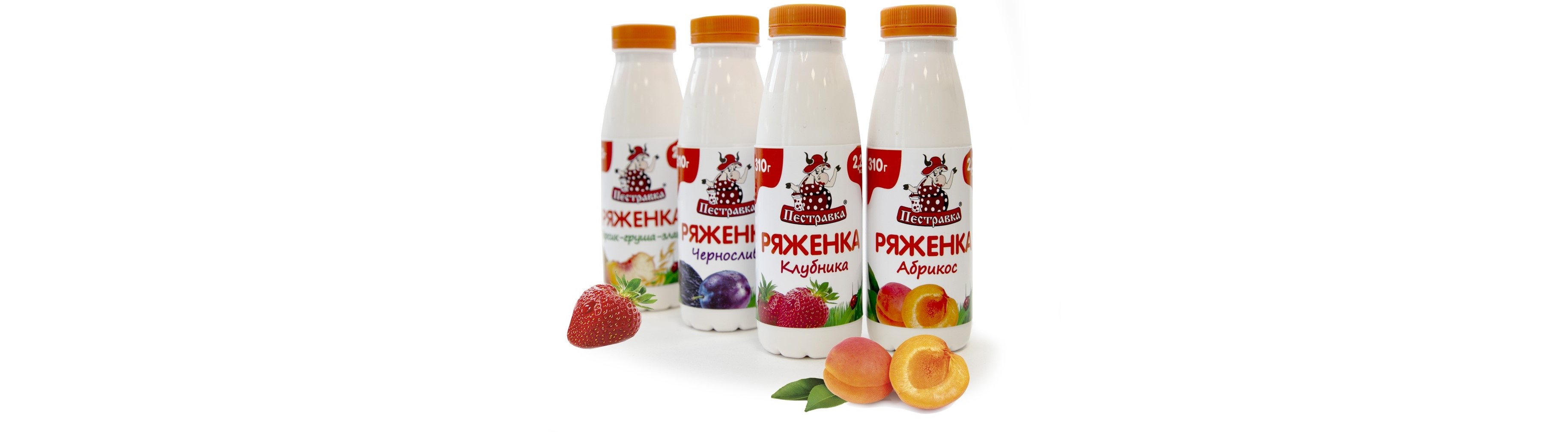 Для того, чтобы порадовать потребителей оригинальными вкусами казалось бы привычного продукта марка соединила напиток со спелыми, сочными ягодами и фруктами. Итогом стала линейка продуктов из четырех вкусов: клубника, абрикос, чернослив и микс — персик-груша-злаки. Каждый — золотой баланс фруктов и ряженки, лакомство, которым хочется баловать себя на завтрак, во время легкого перекуса днем и даже на ночь. А почему бы и нет? У этой ряженки небольшой процент жирности — 2,2%.
